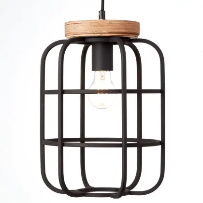 Beschrijving Brilliant Gwen Hanglamp Metaal Hout Zwart | 250mm - Geschikt voor 1x E27