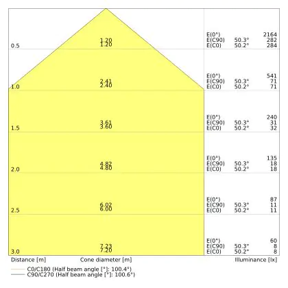 De gradenbundel geeft informatie over hoe breed het licht wordt uitgestraald. Dit zit tussen de 0 en 360 graden (D). Hoe kleiner de hoek, hoe specifieker de lichtbundel is. Over het algemeen is een smalle gradenbundel perfect voor sfeer- of accentverlichting, terwijl een brede gradenbundel ideaal is om grote oppervlaktes te verlichten.