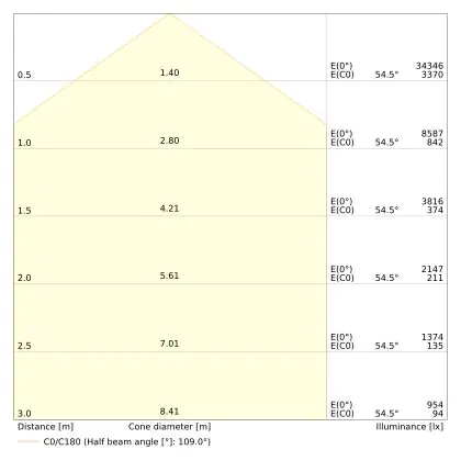 Dit armatuur heeft de kleurtemperatuur 6500K - Daglicht Wit. Wat houdt dit eigenlijk in? Lichtkleuren bepalen de sfeer in een ruimte. Zo is warm wit (3000K) geschikt voor algemene ruimtes en stallen, koel wit (4000K) voor stallen, magazijnen, loodsen en productiehallen, en daglicht wit (6500K) voor productiehallen (detailwerk). Bepaalde omgevingen kunnen verlicht worden met meerdere lichtkleuren. Dit heeft met name te maken met de hoeveelheid natuurlijk daglicht in de ruimte; hoe minder dit is, hoe koeler de lichtkleur keuze. Het licht van deze LED high bay wordt verspreid in een stralingshoek van 110°.