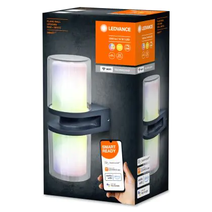 Beschrijving Ledvance Smart+ WiFi LED Wandlamp Buitenverlichting Flare Donker Grijs 14W 1000lm - 830 Warm Wit | RGBW