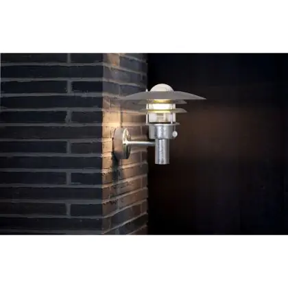 Beschrijving Nordlux Lønstrup 32 Wandlamp Staal en Glas Grijs | 320mm - IP44 - Geschikt voor E27 - Bewegings- en Lichtsensor