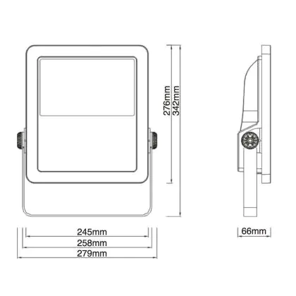 De IP-waarde zegt iets over mate van stof- en waterdichtheid van een armatuur. Het eerste cijfer betreft de stofdichtheid; schaal van 0 (geen bescherming) tot 6 (volledig beschermd). Het tweede cijfer betreft de waterdichtheid; schaal van 0 (geen bescherming) tot 8 (volledig beschermd). Dit armatuur is IP66 - Volledig Stof- en Waterdicht. De IK-waarde geeft weer hoe goed de LED breedstraler is beschermd tegen schokken. Deze schaal loopt van 00 (niet beschermd) tot 10 (beschermd tegen hevige schokken en vandalisme). Deze LED floodlight heeft een IK08 - 5 Joule waarde.