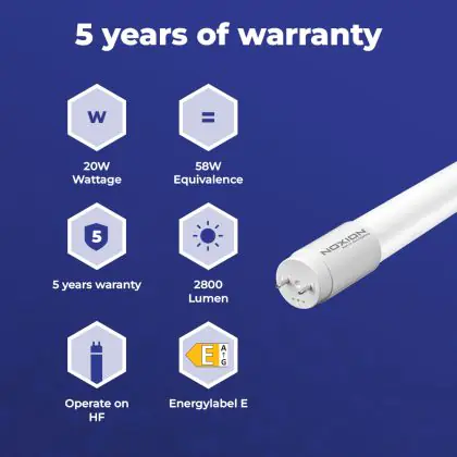 Beschrijving Noxion LED Buis T8 Avant Extreme (HF) High Output 20W 2800lm - 830 Warm Wit | 150cm - Vervangt 58W