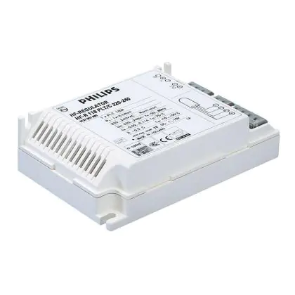 De Philips HF-Regulator PL-T/C een dimbaar voorschakelapparaat specifiek voor PL-T/C lampen. Het lichtvermogen van een lamp aangesloten op de HF-Regulator Pl-T/C is regelbaar van 1 (3% voor 18w) tot 100%.