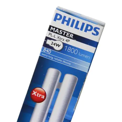 De Philips PL-L 4P zijn langwerpige energiezuinige compacte fluorescentielampen en kunt u gebruiken op een elektronisch voorschakelapparaat. Philips PL-L 24W 865 4P (MASTER) is een lamp uit de Philips PL serie met steekfitting (4p). De lamp heeft een lengte van 32,2 cm. U klikt de lichtbron eenvoudig in uw lampfitting. Het is belangrijk dat u vóór het vervangen eerst de elektriciteit uitschakelt.
