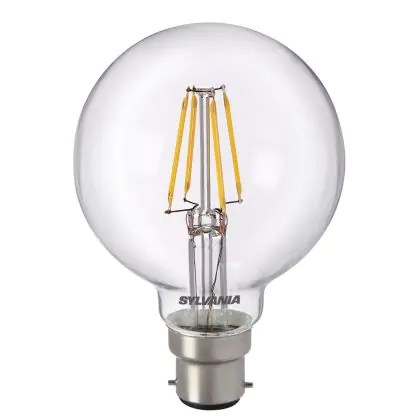 Beschrijving Sylvania Retro ToLEDo B22 Globe 80mm Filament Helder 5W 640lm - 827 Zeer Warm Wit | Vervangt 60W