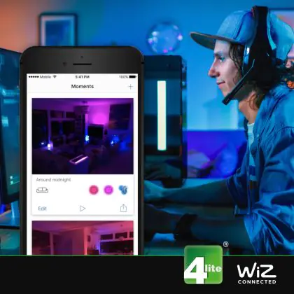 Zodra je de WiZ App hebt gedownload (via Apple App Store of Google Play), kun je kiezen uit meer dan 15 talen, waardoor je makkelijk door de app kunt navigeren. Bovendien biedt de app je 24/7 chatsupport om je te helpen met alle vragen, opmerkingen en/of problemen waar je tegenaan loopt. Ook handig, je kunt alle slimme lampen met de app besturen, zolang ze een ‘’Connected by Wiz’’ label op de verpakking hebben staan.